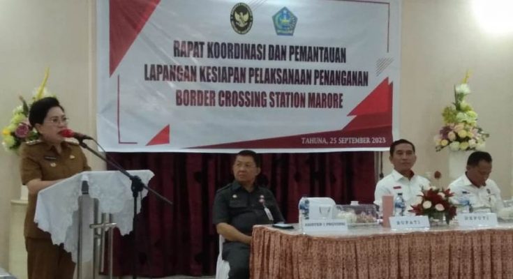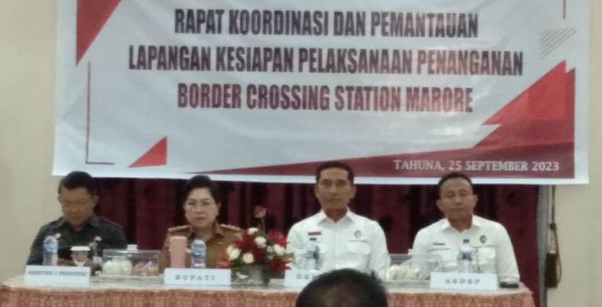 SANGIHE.Identitasnews.id – Dalam rangka tindak lanjut Pembangunan Border Crossing Station (BCS) di Pulau Marore, maka Penjabat Bupati Kepulauan Sangihe dr. Rinny Tamuntuan menerima kunjungan kerja (Kunker) Deputi Bidang Pertahanan Negara Kemenkopolhukam Republik Indonesia, Senin (25/09/2023).