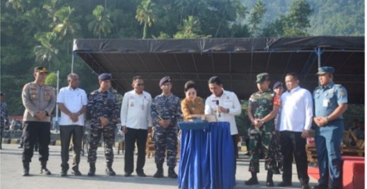 Deputi Bidang Pertahanan Negara Kemenkopolhukam Laksamana Muda TNI Krisdiyanto, M.Tr, Opsla dalam sambutannya mengapresiasi kegiatan pencanangan ekspor komoditi perikanan dari Pelabuhan Nusantara Tahuna ke Pelabuhan General Santos Philipina, sebagai upaya positif pemerintah daerah dalam mengimplementasikan program, khususnya dalam percepatan ekonomi nasional dan peningkatan kesejahteraan masyarakat terlebih khusus lagi para nelayan melalui kegiatan ekspor komoditi unggulan perikanan yang di dukung oleh pemerintah pusat.
