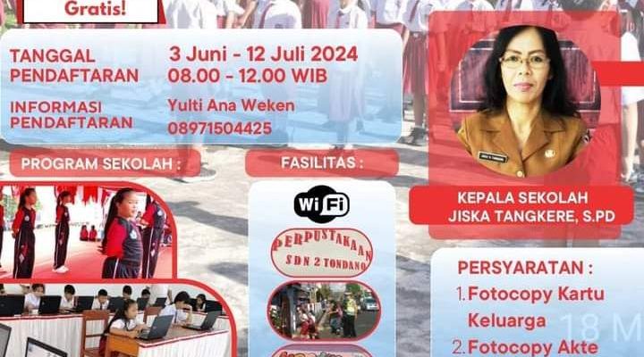 TONDANO, identitasnews.id – pendaftaran peserta didik baru (PPDB) tahun pelajaran 2024-2025 sudah dibuka, termasuk di SD Negeri 2 Tondano.