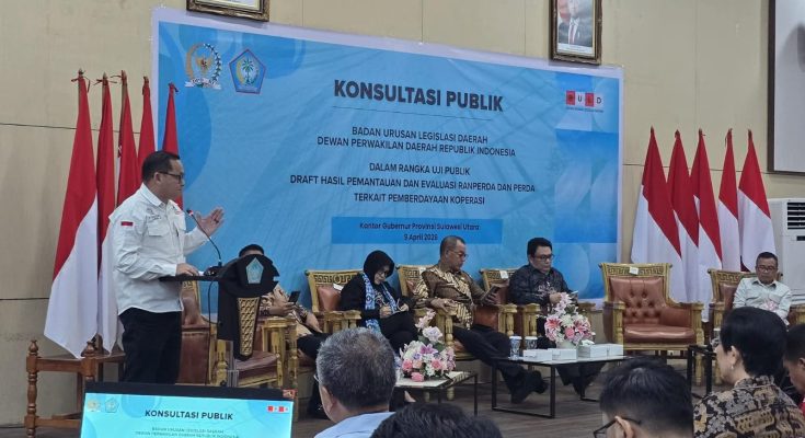 MANADO, identitasnews.id – Hukum Tua Desa Kanonang Satu Kecamatan Kawangkoan Barat Lucky G J Kasenda SE SCL M.Si, mendapat kepercayaan dari Ketua DPD RI Sultan Bachtiar Najamudin, Pimpinan Badan Urusan Legislasi Daerah (BULD) DPD RI Ketua Ir. Stefanus BAN Liow, MAP, sebagai Narasumber dalam kegiatan Konsultasi Publik Draf Hasil Pemantauan Ranperda dan Perda terkait pemberdayaan Koperasi Kamis (9/4/2026), bertempat di Kantor Gubernur Sulawesi Utara.