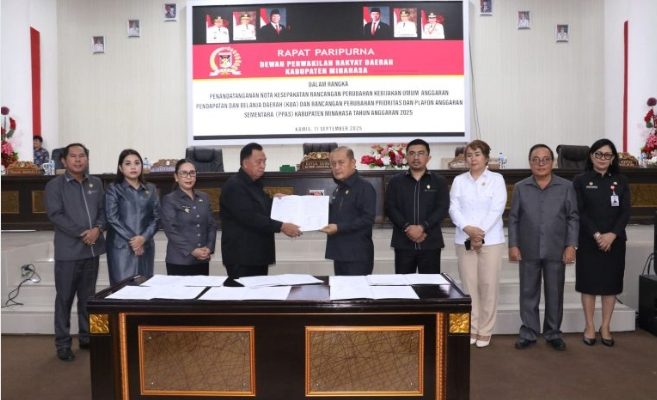 Hal ini menyusul Rapat Paripurna DPRD Minahasa, dalam rangka penandatanganan nota kesepakatan KUA PPAS, yang dipimpin langsung Ketua DPRD Drs Robby Longkutoy MM, didampingi Wakil Ketua Putri Pontororing dan Adrie Kamasi, serta Sekwan Dra Ria Suwarno MSi, Kamis (11/9/2025).
