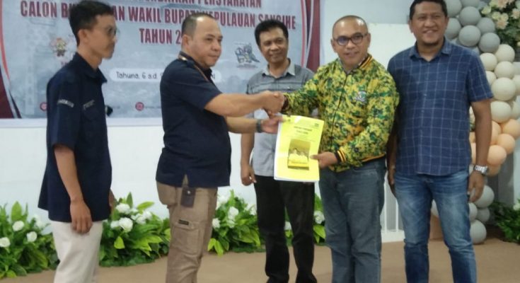 Penyerahan dokumen perbaikan persyaratan pasangan calon tersebut dilakukan oleh Sekretaris DPD II Partai Golkar Kabupaten Kepulauan Sangihe Jusak Ruitan, S.Sos didampingi Pengurus Partai Demokrat Kabupaten Kepulauan Sangihe dan diterima oleh Kepala Sub Bagian Teknis Penyelenggaraan Pemilu, Partisipasi dan Hubungan Masyarakat KPU Kabupaten Kepulauan Sangihe Stenly Legrans, S.IP.