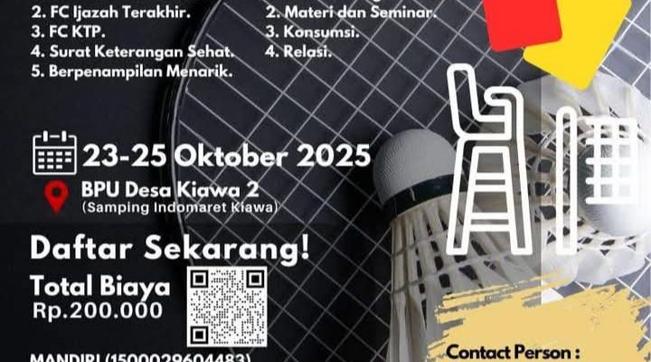 KAWANGKOAN, identitasnews.id – Pengurus Persatuan Bulu Tangkis Seluruh Indonesia (PBSI) Kabupaten Minahasa, mengelar Penataran Wasit Bulu Tangkis tingkat Dasar selama tiga hari Kamis, Jumat dan Sabtu tanggal 23,24 dan 25 Oktober 2025 bertempat di balai pertemuan umum desa Kiawa Dua kecamatan Kawangkoan Barat.