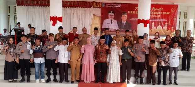 Kemudian Bupati Bolmong ir.Limi Mokodompit MM atas sambutannya,” Selamat memperingati Maulid Nabi Muhamad tanggal 12 Rabil awal tahun 1445 H/2023 M, Kepada seluruh umat muslim yang ada di daerah Bolmong beserta kita semua yang hadir saat sekarang ini.