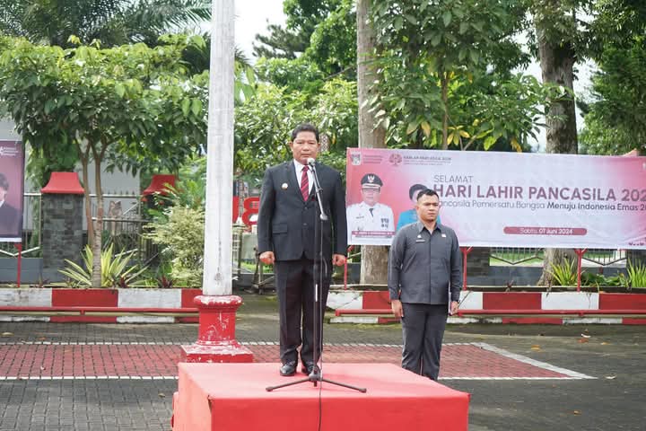 “Peringatan Hari Lahir Pancasila tahun 2024 ini mengambil tema, Pancasila Jiwa Pemersatu Bangsa Menuju Indonesia Emas 2045. Tema ini mengandung maksud bahwa, Pancasila menyatukan kita dengan segala perbedaan suku, agama, budaya dan bahasa, dalam menyongsong 100 tahun Indonesia Emas yang maju, mandiri dan berdaulat,” kata Bupati.