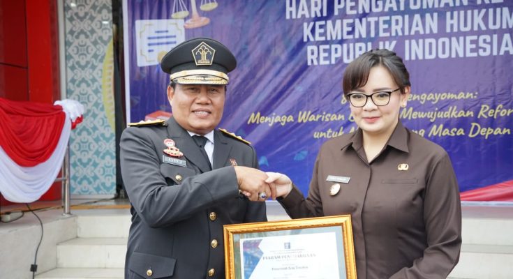 Usai upacara, dilakukan penyerahan piagam penghargaan, di mana Pemerintah Kota Tomohon menerima penghargaan dari Kanwil Kemenkumham Sulut atas peran aktif sebagai mitra kerja dalam mendukung pengembangan kawasan berbasis Kekayaan Intelektual.(Echa)
