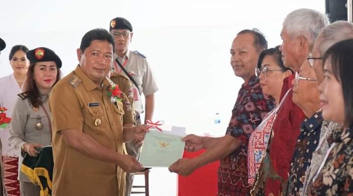 TONDANO, identitasnews.id – Penjabat Bupati Minahasa, Dr Jemmy S Kumendong MSi, menghadiri acara penyerahan 200 sertipikat tanah dan peluncuran sertifikat tanah elektronik secara simbolis oleh Kanwil BPN Provinsi Sulut, Senin (4/12/2023) bertempat di Benteng Moraya Tondano.