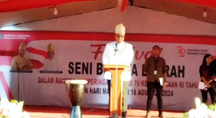 SANGIHE.Identitasnews.id – Pemerintah Kabupaten (Pemkab) Kepulauan Sangihe menggelar Festival Seni Budaya Daerah dalam rangka memperingati Hari Ulang Tahun (HUT) Kemerdekaan Republik Indonesia ke 79 dan Hari Masamper ke 2 tahun, sejak Masamper mendapat pengakuan sebagai Kekayaan Intelektual Komunal milik Kabupaten Kepulauan Sangihe dari Kementerian Hukum dan Asasi Manusia.