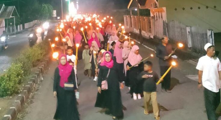 BOLMUT, Identitasnews.Id – Dalama rangka memperingati Maulid Nabi Muhammad SAW, Pemerintah Desa (Pemdes) Talaga, Kecamatan Bintauna, Kabupaten Bolaang Mongondow Utara (Bolmut) menggelar pawai obor bersama masyarakat setempat. Kamis, (04/09).