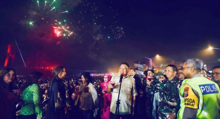 Hal ini disampaikan Olly pada semarak Pesta Kembang Api Menyambut Tahun Baru Masehi 2024, bertempat di Area Parkir Pasar Bersehati Kalimas, Kota Manado, Sulawesi Utara, Minggu (31/12/2023).