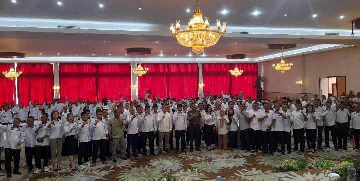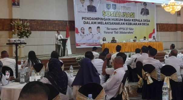 Bolmong,identitasnews.id– Gelar Acara Sosialisasi Pendampingan Hukum pada kepala-kepala desa dalam melaksanakan mengambil kebijakan Desa, tempat pelaksanaan di Ball Room Hotel Sutan Raja pada
