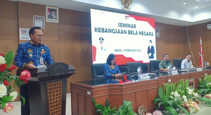 TANDANO, identitasnews.id – Dalam rangka membangun semangat dan spirit nasionalisme, Penjabat Bupati Minahasa, Dr. Noudy R.P. Tendean, S.IP, M.Si, didampingi Sekretaris Daerah Dr Lynda D Watania MM,M,Si, secara resmi membuka Seminar Kebangsaan dan Bela Negara yang diselenggarakan oleh Badan Kesatuan Bangsa dan Politik Kabupaten Minahasa bekerja sama dengan Direktorat Bela Negara Kementerian Pertahanan Republik Indonesia. Acara ini berlangsung di ruang sidang Kantor Bupati Minahasa pada Senin (17/2/2025).