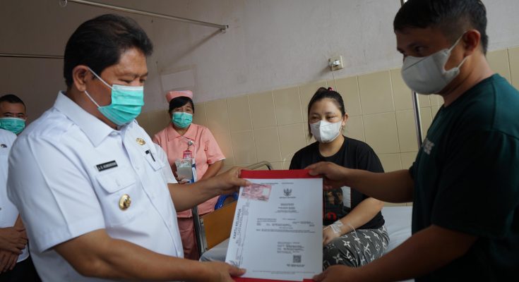 TONDANO, identitasnews.id – Penjabat (Pj) Bupati Minahasa, Dr Jemmy Stani Kumendong MSi, menyerahkan tiga dokumen kependudukan kepada warga yang melakukan persalinan di RSUD Sam Ratulangi Tondano, Rabu (20/3/2024).