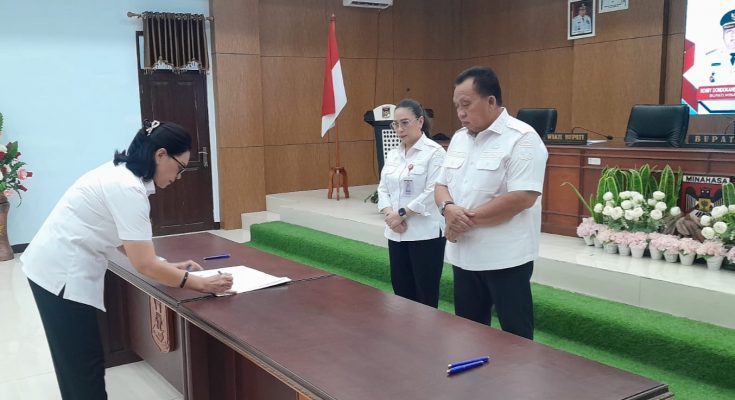 Penandatanganan komitmen antikorupsi ini digelar di Ruang Sidang Kantor Bupati, Rabu, (3/12/2025), dan disaksikan langsung oleh Bupati Robby Dondokambey (RD) dan Wakil Bupati Vanda Sarundajang (Vasung).