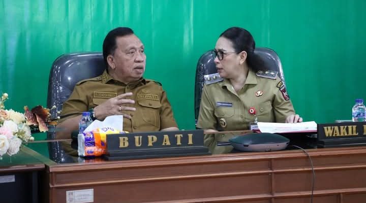TONDANO, identitasnews id – Bupati Minahasa Robby Dondokambey, S.Si., M.AP (RD), bersama Wakil Bupati Minahasa Vanda Sarundajang, S.S (Vasung), turut serta dalam Rapat Koordinasi Pengendalian Inflasi yang dipimpin oleh Sekretaris Jenderal Kementerian Dalam Negeri Republik Indonesia, Komjen Pol. Drs. Tomsi Tohir, M.Si., melalui Zoom Meeting. Rapat berlangsung di Ruang Command Center Kantor Bupati Minahasa pada Senin, (23/6/2025).