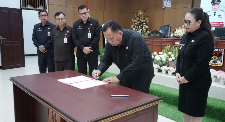 ​Kegiatan serah terima jabatan meliputi posisi Camat dan Kepala Bagian yang berlangsung di Ruang Sidang Kantor Bupati Minahasa.