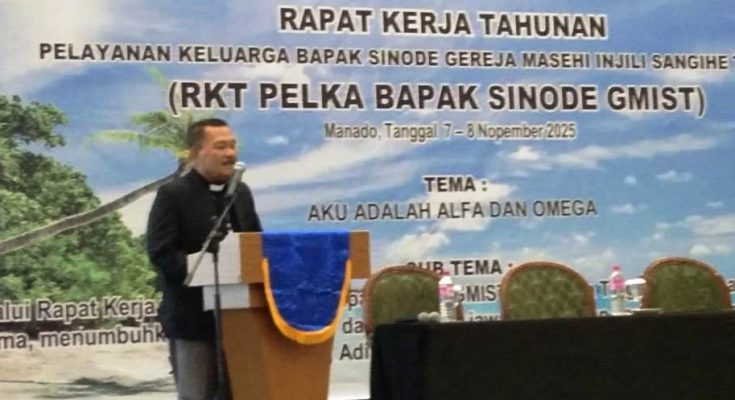 SANGIHE.Identitasnews.id – Kegiatan Rapat Kerja Tahunan (RKT) Pelayanan Keluarga (Pelka) Bapak Sinode Gereja Masehi Injili Sangihe Talaud (GMIST) tahun 2025 di Resort Bitung yang digelar di Sintesa Peninsula Hotel Manado, Jumat (07/11/2025), diawali dengan ibadah yang dipimpin oleh Ketua Resort Bitung Pdt. Sophia M.T. Lanongbuka, S.Th., M.Ag.