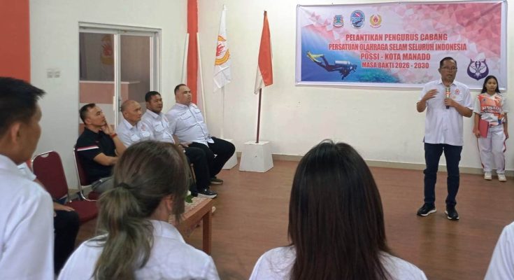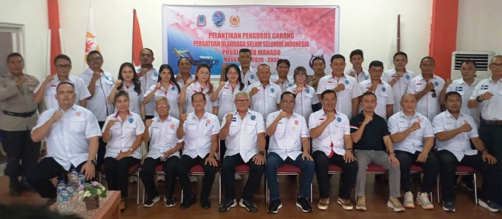 Manado, identitasnews.id – Sabtu 11 April 2026, berdasarkan surat keputusan Ketua Umum Pengurus Cabang Olahraga Selam Seluruh Indonesia (POSSI) Sulut dengan Nomor 017/possisulut/sk/III/2026, Ketua POSSI Manado, Frangki David, melantik pengurus POSSI Manado Masa Bakti 2026-2030, yang dilaksanakan di gedung Youth Center Manado.