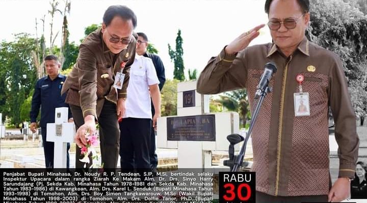 TONDANO, identitasnews.id -Dalam rangka memperingati Hari Ulang Tahun (HUT) Minahasa yang ke-596, Pj. Bupati Minahasa Noudy Tendean bertindak sebagai inspektur upacara ziarah ke makam para mantan Bupati Minahasa sebagai bentuk penghormatan dimana telah berjasa membangun daerah kabupaten Minahasa.