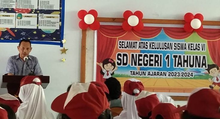 Selain itu, disampaikan terima kasih kepada guru-guru yang telah mendampingi dan membimbing siswa siswi selama enam tahun berada di SDN 1 Tahuna dalam proses pembelajaran sehingga mereka akan lulus sesudah pengumuman nanti, lanjut Timpalen.