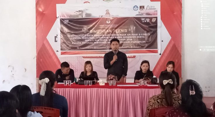 Ketua PPK Tompaso Barat Valen Mokalu, mengatakan Bimtek Pantarlih ini terkait dengan tugas dan tanggung-jawab dalam pemutahiran data pemilih dan penggunaan aplikasi E-Coklit untuk Pemilihan Gubernur dan Wakil Gubernur Sulut serta Bupati dan Wakil Bupati Minahasa tahun 2024.