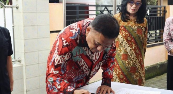 LANGOWAN, identitasnews.id – Gubernur Sulawesi Utara, Olly Dondokambey menghadiri Ibadah Syukur Pentahbisan dan Peresmian Pastori 2 GMIM Schwarz Sentrum Langowan, di Pastori 2 GMIM Schwarz Sentrum Langowan, Wilayah Langowan I, Desa Wolaang, Kecamatan Langowan Timur, Kabupaten Minahasa, pada Minggu (28/01/2024).