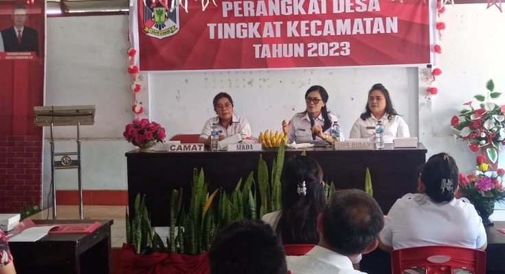 KAWANGKOAN, identitasnews.id – Sekretaris Daerah (Sekda) kabupaten. Minahasa Dr Lynda Watania M.Si, memberikan materi pada kegiatan Peningkatan Kapasitas Perangkat Desa di kecamatan Kawangkoan, Rabu (11/11/2023) di ruang kantor Data Kecamatan Kawangkoan.