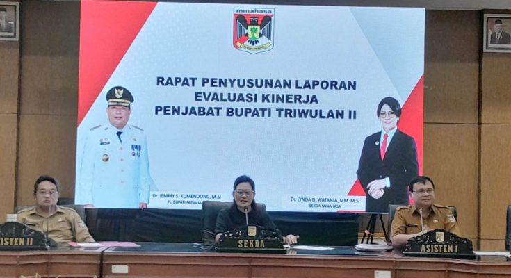 TONDANO, identitasnews.id – Sekretaris Daerah Kabupaten Minahasa Dr. Lynda D. Watania, MM, M.Si, Memimpin Rapat Penyusunan Laporan Evaluasi Kinerja Penjabat Bupati Triwulan II, Bertempat di Ruang Sidang Kantor Bupati Minahasa, Selasa (2/4/2024).