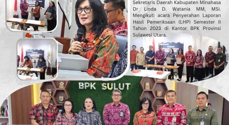 TONDANO identitasnews.id – Sekretaris Daerah (Sekda) Kabupaten Minahasa Dr Lynda D. Watania MM, MSi, Menghadiri acara Penyerahan Laporan Hasil Pemeriksaan (LHP) Semester II Tahun 2023 di Kantor BPK Provinsi Sulawesi Utara (Sulut), Kamis (11/1/2024).