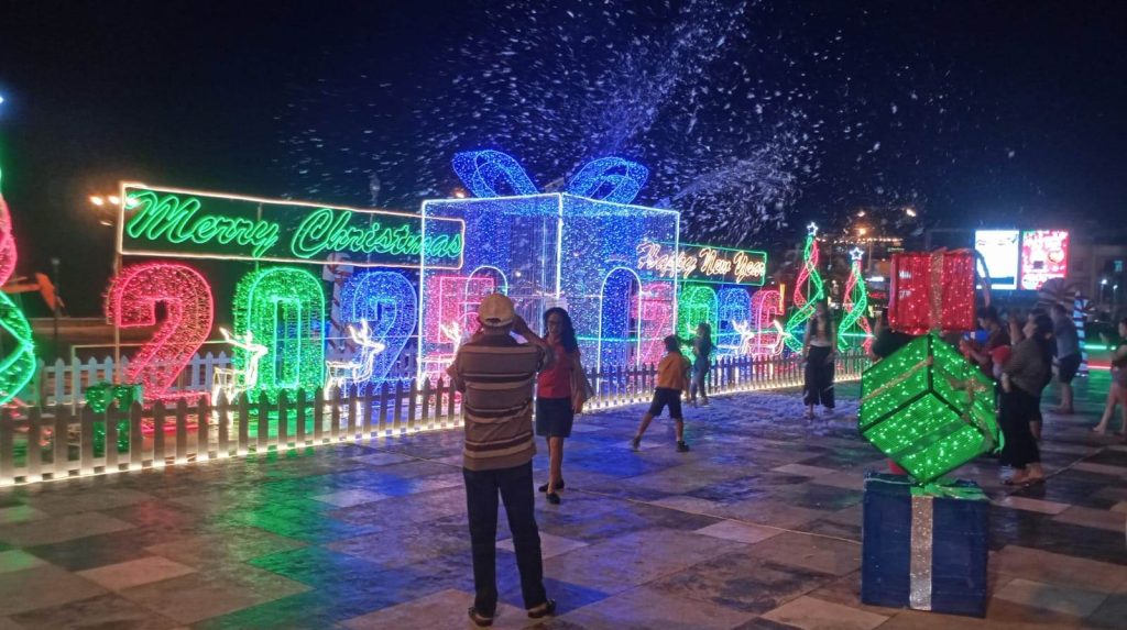 Disepanjang jalan boulevard mata kita sudah dimanjakan dengan hiasan natal dan atraksi salju buatan yang menarik perhatian warga masyarakat Kota Manado.