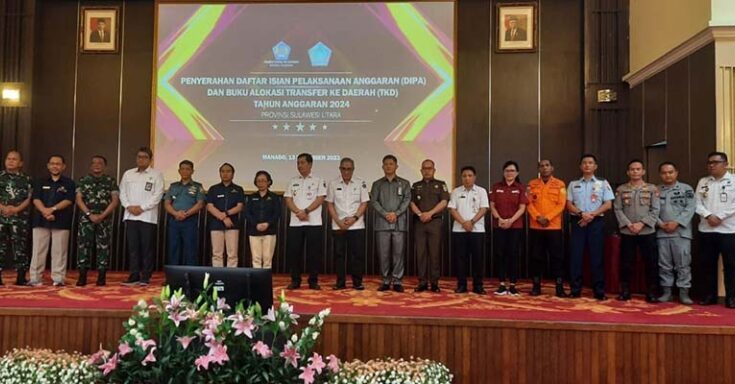 Sulut, identitasnews.id – Wakil Gubernur Provinsi Sulawesi Utara, Steven Kandouw menyerahkan Daftar Isian Pelaksanaan Anggaran (DIPA) dan Daftar Alokasi Transfer ke Daerah (TKD) Tahun Anggaran (TA) 2024 kepada Pimpinan Instansi Vertikal dan Kepala Daerah di lingkup Provinsi Sulut, bertempat di Aula Gedung Keuangan Negara Manado Lantai 6 Jl. Bethesda No. 8 Manado, Rabu (13/12/2023).