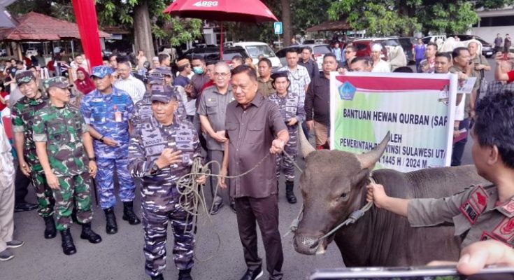 Sulut, identitasnews.id – Gubernur Sulawesi Utara, Prof DR (HC) Olly Dondokambey, menyerahkan bantuan hewan qurban dalam rangka perayaan Idul Adha tahun 1445 H yang jatuh pada 17 Juni 2024.