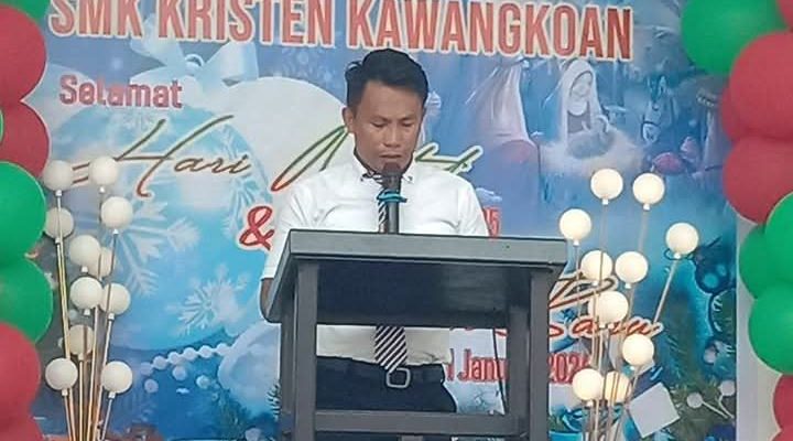 KAWANGKOAN, identitasnews.id – Ibadah menyambut Natal 25 Desember 2023 turut digelar oleh SMK Kristen Kawangkoan, Selasa (16/12/2025).