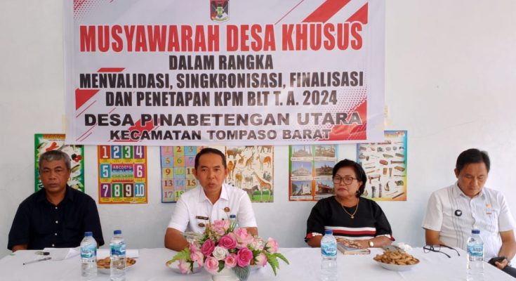 TOMPASO, identitasnews.id – Pemerintah Desa Pinabetengan Utara Kecamatan Tompaso Barat yang dipimpin oleh Hukum Tua Hendra Ch Tandaju SE AK, bersama pimpinan lembaga desa, mengelar Musyawarah Desa Khusus (Musdesus) Keluarga Penerima Manfaat (KPM) Bantuan Langsung Tunai (BLT) tahun 2024, bertempat di Kantor Hukum Tua, belum lama ini.