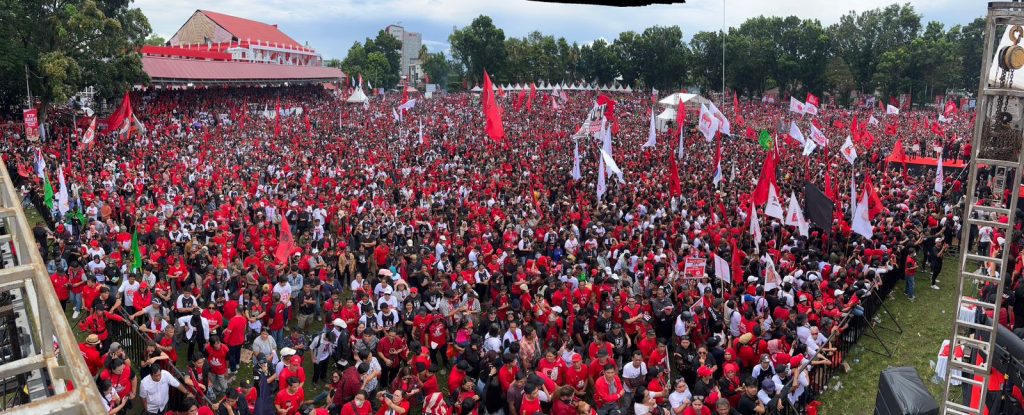 MANADO, identitasnews.id – Luar biasa masa PDI-Perjuangan Sulawesi Utara (Sulut), pendukung Capres Ganjar-Mahmud (GAMA) membludak, terlihat jutaan hajatan masyarakat Sulut militan PDI-Perjuangan yang memadati lapangan KONI Sario Manado, Kamis (01/02/2024).