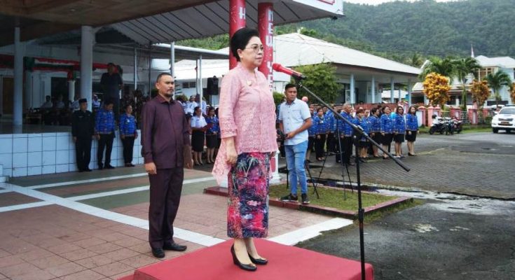 Penjabat Bupati dr. Rinny Tamuntuan saat membacakan sambutan Menteri Pendidikan, Kebudayaan, Riset dan Teknologi Republik Indonesia menyampaikan bahwa lima tahun terakhir ini adalah waktu yang sangat mengesankan dalam perjalanan di Kemendikbudristek. Menjadi pemimpin dari gerakan Merdeka Belajar semakin menyadarkan kami tentang tantangan dan kesempatan yang kita miliki untuk untuk memajukan pendidikan Indonesia.