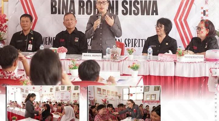 LANGOWAN, identitasnews.id – Wakil Bupati (Wabup) Minahasa, Vanda Sarundajang, SS, menghadiri sekaligus menjadi narasumber pada kegiatan Sosialisasi Bina Rohani Siswa yang digelar di SMP Negeri 1 Langowan, Kamis (11/9/2025).