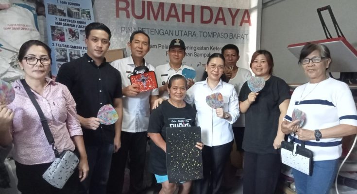 Didampingi Camat Tompaso Barat Stefry V Pandey ST MAP, dan Hukum Tua Desa Pinabetengan Utara Hendra Ch Tandaju SE AK, Wabup Vasung, mengunjungi bank sampah yang mampu memproduksi berbagai jenis produk diantaranya sofa, tas, gantungan kunci dan lainnya