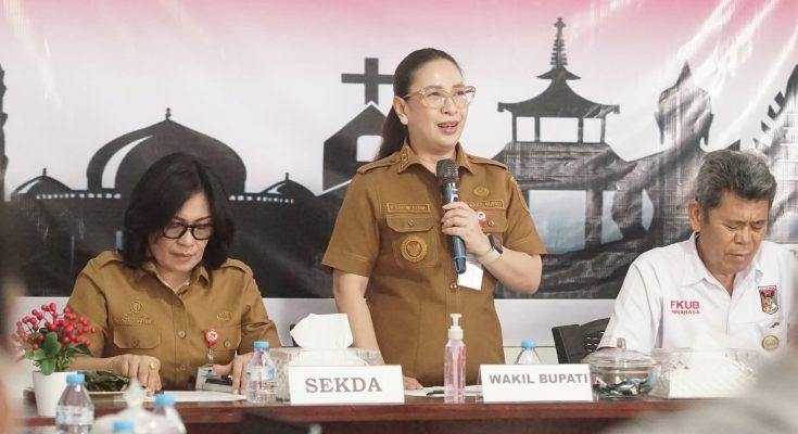 TONDANO, identitasnews.id – Wakil Bupati (Wabup) Minahasa, Vanda Sarundajang, SS (VaSung) yang juga selaku Ketua Dewan Penasehat Forum Kerukunan Umat Beragama (FKUB) Kabupaten Minahasa, memimpin langsung Rapat Koordinasi FKUB bertempat di Kantor Sekretariat FKUB Kabupaten Minahasa, Senin (15/9/2025)
