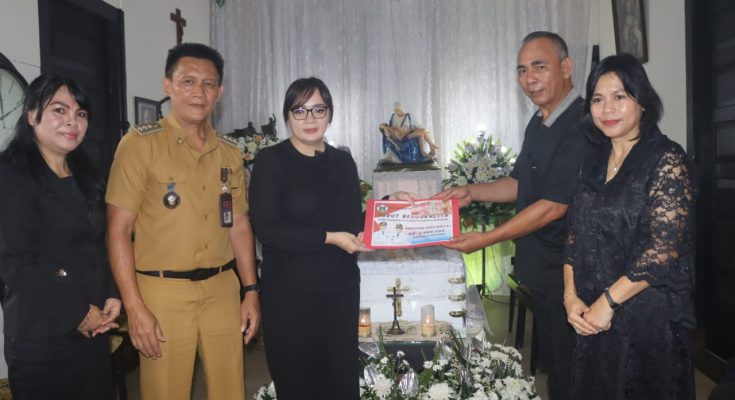 Pada kesempatan tersebut, Wakil Walikota Tomohon menyerahkan langsung santunan Duka pemerintah kota Tomohon.(Echa)