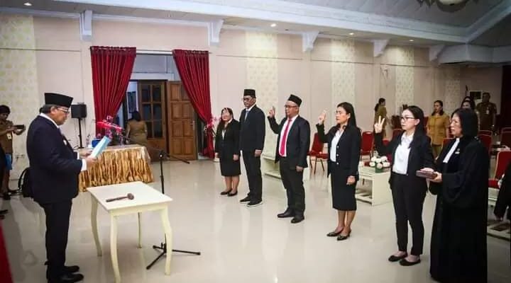 SANGIHE.Identitasnews.id – Penjabat Bupati Kepulauan Sangihe Albert Huppy Wounde, SH., MH mengambil sumpah/janji serta melantik 4 (empat) Pejabat Fungsional di lingkup Pemerintah Kabupaten (Pemkab) Kepulauan Sangihe, bertempat di Ruang Serba Guna Rumah Jabatan Bupati, Selasa (03/09/2024).
