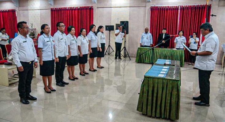 Acara pelantikan tersebut dihadiri Sekretaris Daerah Melanchton Harry Wolff, ST., ME, Kepala Inspektorat Daerah N.R.E. Pande, SH, Asisten Administrasi Umum Vebe A.K. Bawole, S.Sos serta Kepala Badan Kepegawaian dan Pengembangan Sumber Daya Manusia Daerah Aris Pilat, S.STP, M.Si.(jl)
