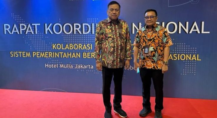 Gubernur Olly hadir pada Rapat Koordinasi Nasional (Rakornas) Kolaborasi Implementasi Sistem Pemerintahan Berbasis Elektronik (SPBE) Nasional, bertempat di Hotel Mulia Jakarta, Selasa (17/10/2023).